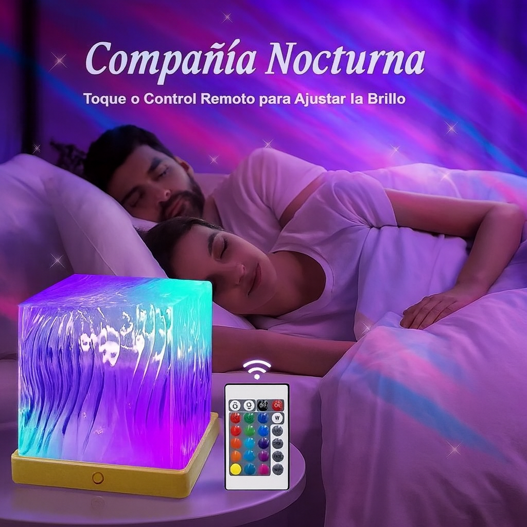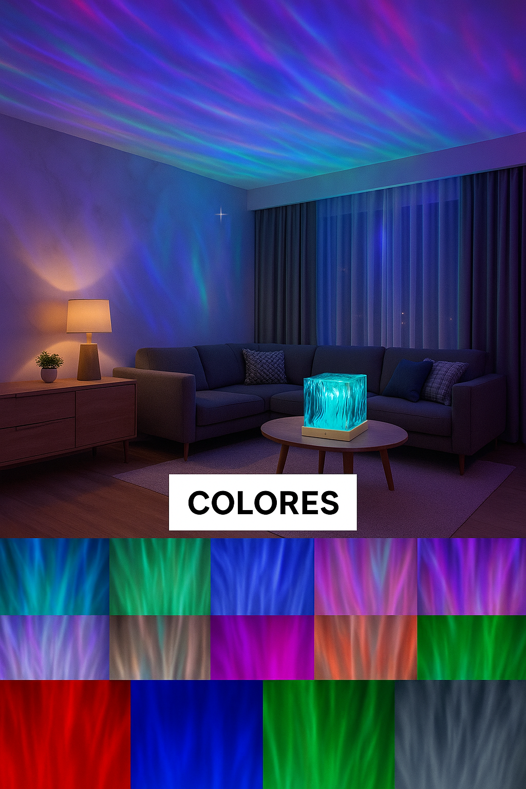 Inspirada en las auroras boreales, su luz fluida proyecta colores suaves y envolventes que reducen la ansiedad, relajan los músculos y equilibran el estado de ánimo.